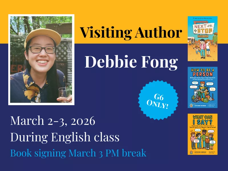 Ms. Fong will work with Grade 6 students during English periods, check the link above to see more of her work.
